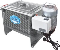 Máselnice elektrická FJ32,230 V, 32litrů Výkon tohoto profesionálního přístroje s motorem 370 Watt je naprosto skvělý. V závislosti na teplotě smetany (od 10 do 15°C), resp. na obsahu tuku trvá výrobní proces od 20 do 35 minut. Po uplynutí 35 minut se přístroj automaticky zastaví. Máselnici naplňte min. 4 litry, maximálně však 13 litry smetany. Všechny části, které příjdou do kontaktu se smetanou, jsou vyrobeny z nerezové oceli. Pomocí velkého průhledného víka můžete kontrolovat výrobní proces. Několikastupňový spínač umožňuje zkrátit či urychlit dobu zmáselňování. Po ukončení výroby másla lze pomocí výpustného kohoutu snadno vypustit podmáslí. 230V Dostupné i ve variantě 115 V, č. 13270-115Zákazníci hodnotí