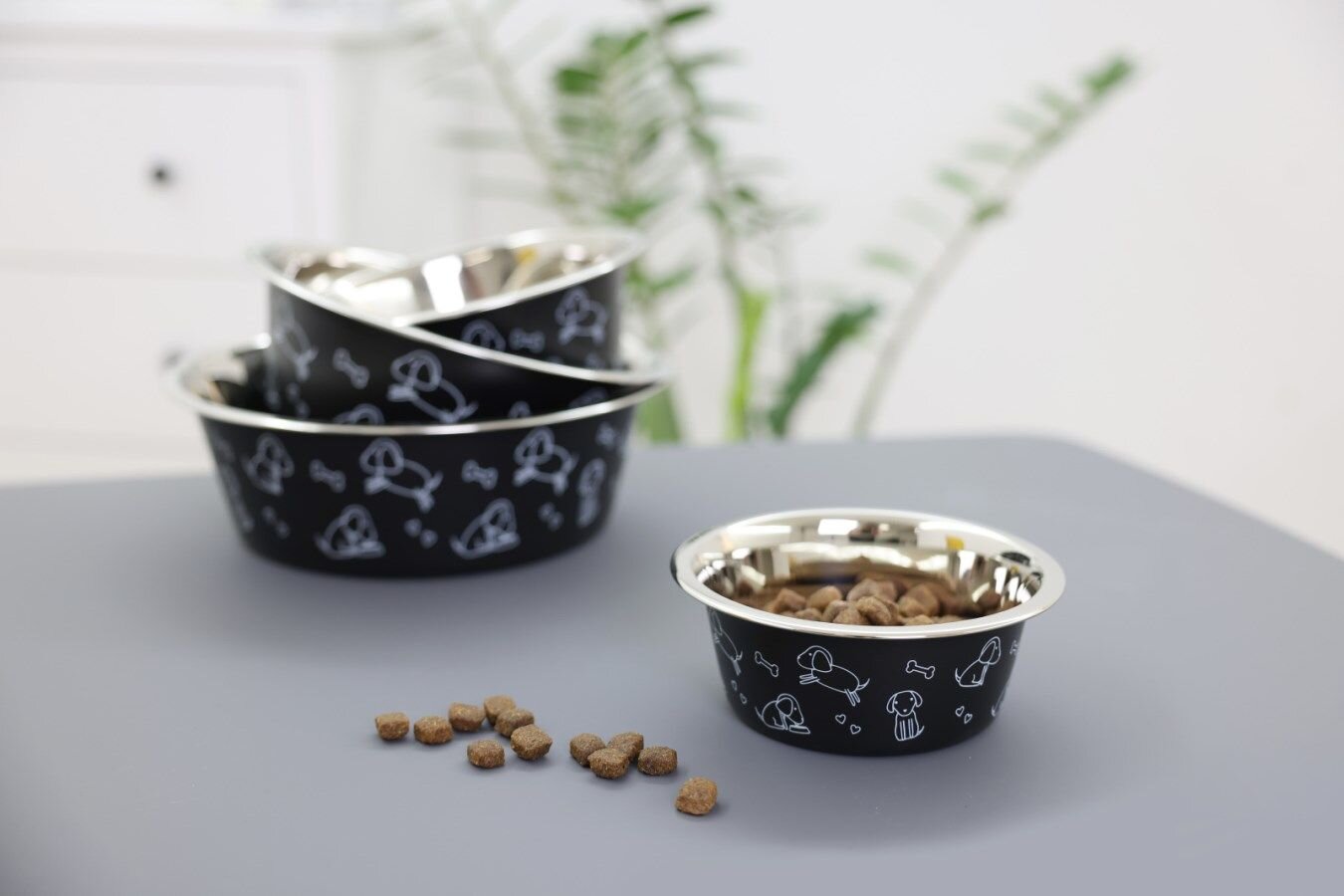 Nerezová miska pro psy, vnější povrchovou úpravou v matně černé barvě.