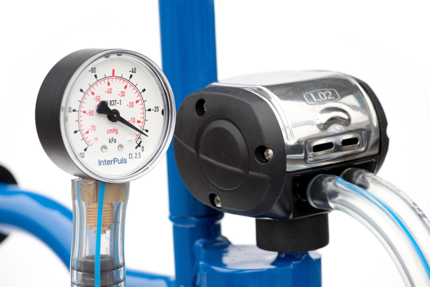 - Pulzátor typu L02 je asynchronní, což znamená, že se střídavě dojí levé a pravé struky a tím je odtok mléka plynulejší a podtlak stabilnější, což zaručuje dobrý zdravotní stav dojnice.