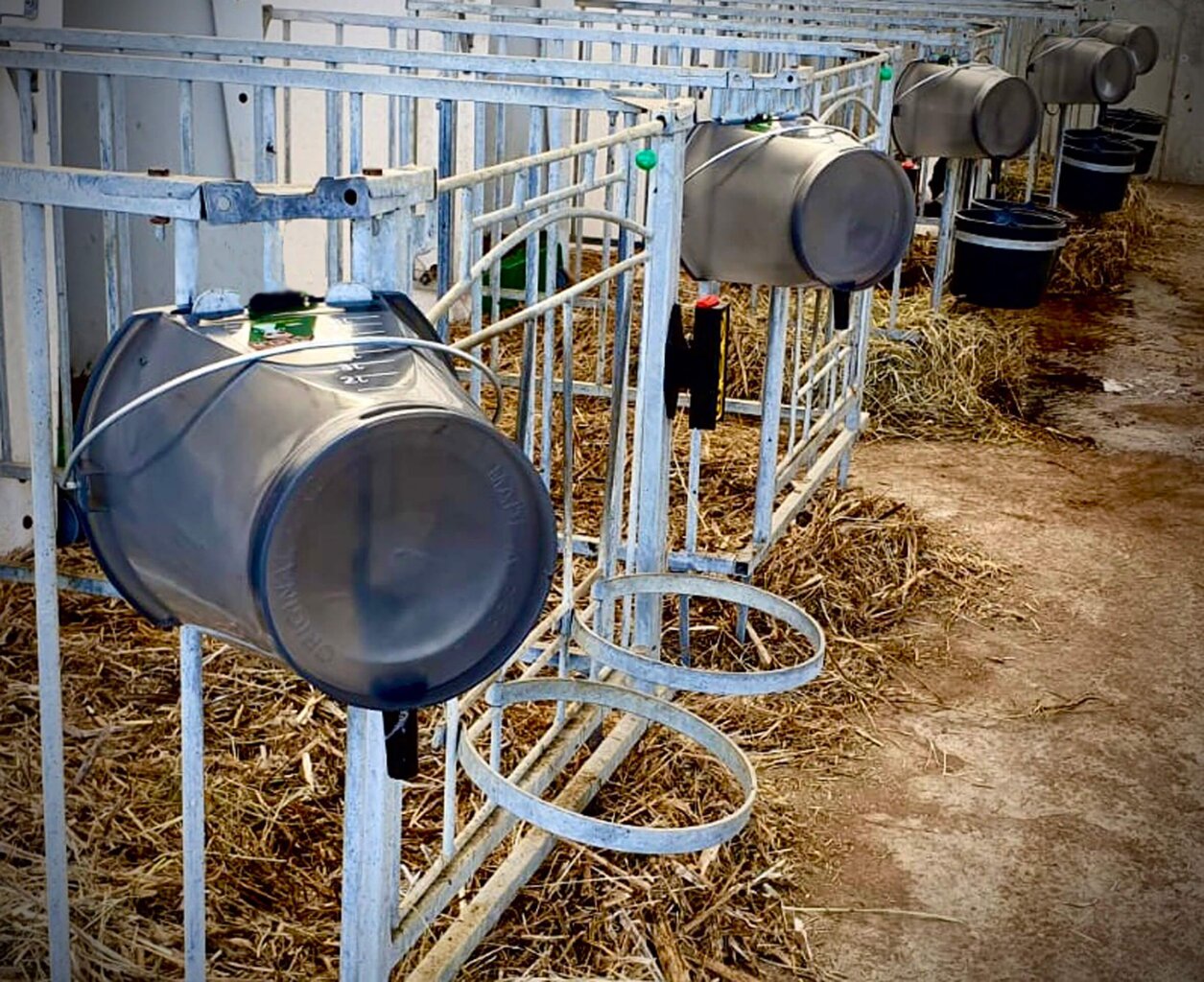 Umístěte kbelík na stabilní povrch nebo jej zavěste na ohrádku. Telata mohou mléko pít vlastním tempem, což podporuje zdravé trávení. - Údržba: