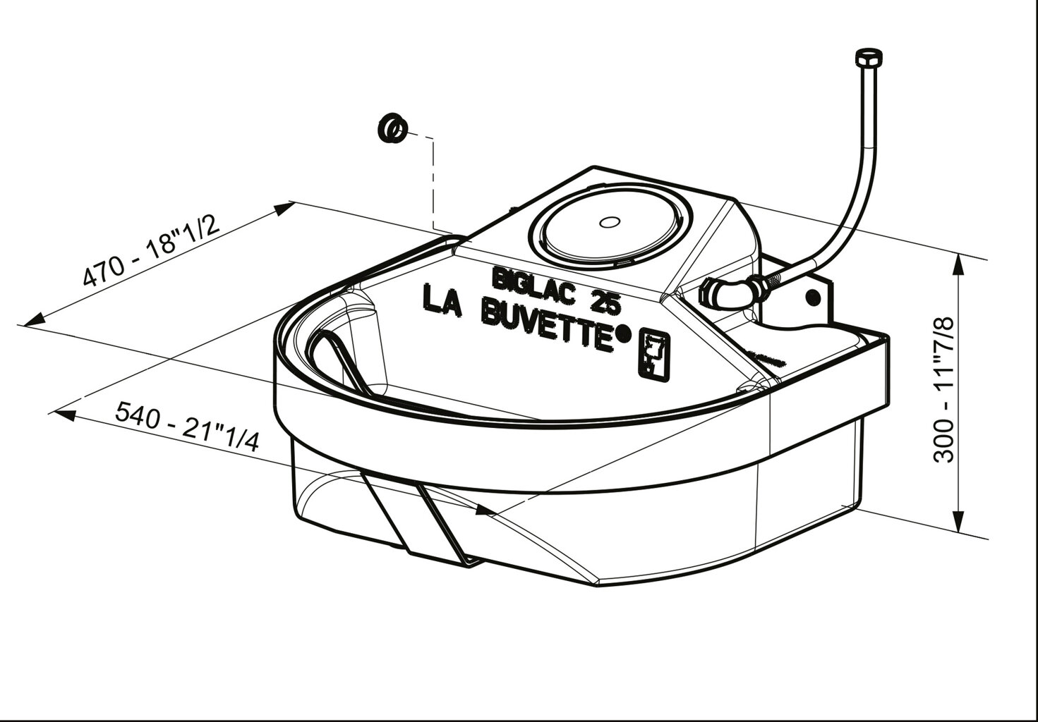 Napaječka plováková BIGLAC25• napájecí žlab, hluboký 17,5 cm vyrobený z vysoce odolného polyethylenu se širokou hranou zabraňující rozlití