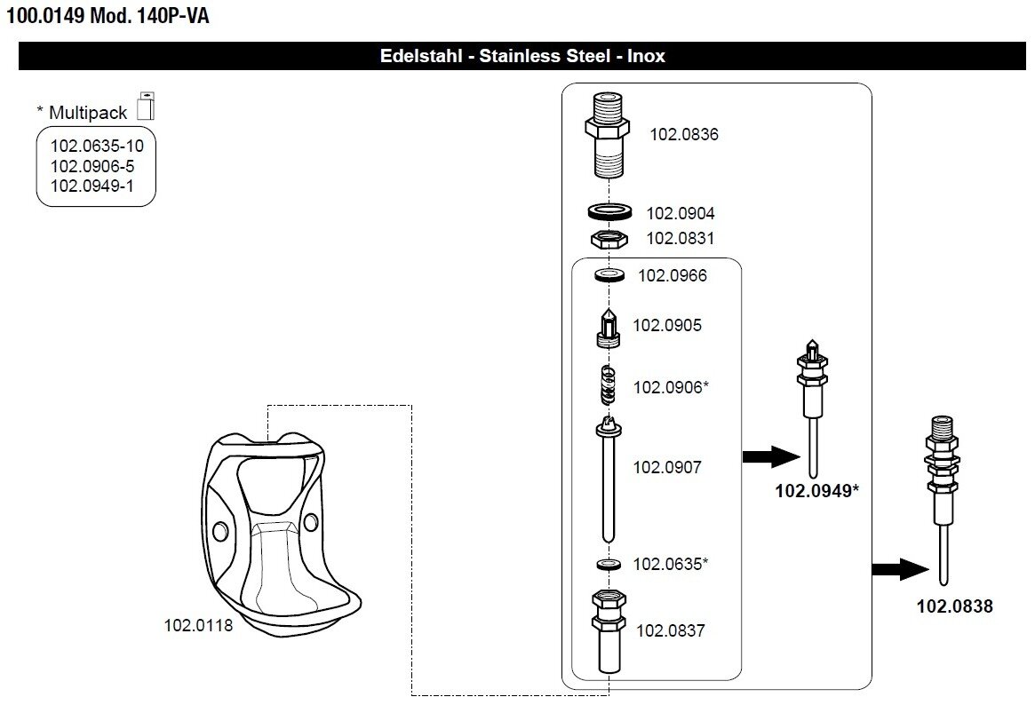 - na výběr s mosazným nebo nerezovým ventilem → seznam náhradních dílů k jednotlivým napáječkám v přiložených obrázcích