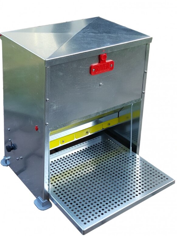 Moderní nášlapné krmítko určené pro efektivní a úsporné krmení drůbeže. Je vyrobeno z kvalitního pozinkovaného plechu o tloušťce 1 mm, který zajišťuje vysokou odolnost, dlouhou životnost a ochranu proti korozi.