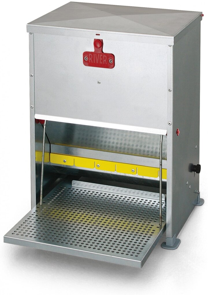 Moderní nášlapné krmítko určené pro efektivní, úsporné a hygienické krmení drůbeže. Je vyrobeno z kvalitního pozinkovaného plechu o tloušťce 1 mm, který zajišťuje vysokou odolnost, dlouhou životnost a ochranu proti korozi.