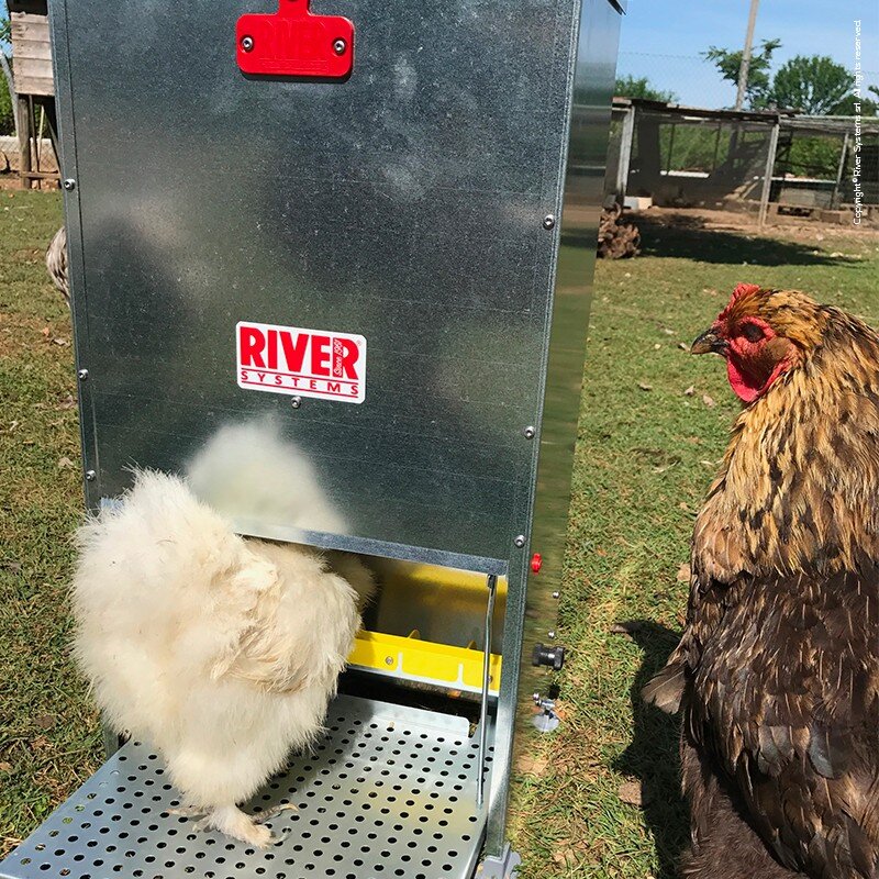Krmítko funguje na principu nášlapného mechanismu – slepice sešlápnutím pedálu otevře naklápěcí dvířka a získá přístup ke krmivu. Po odchodu zvířete se otvor automaticky uzavře, čímž se zabrání znečištění, navlhnutí i zbytečnému plýtvání krmivem.