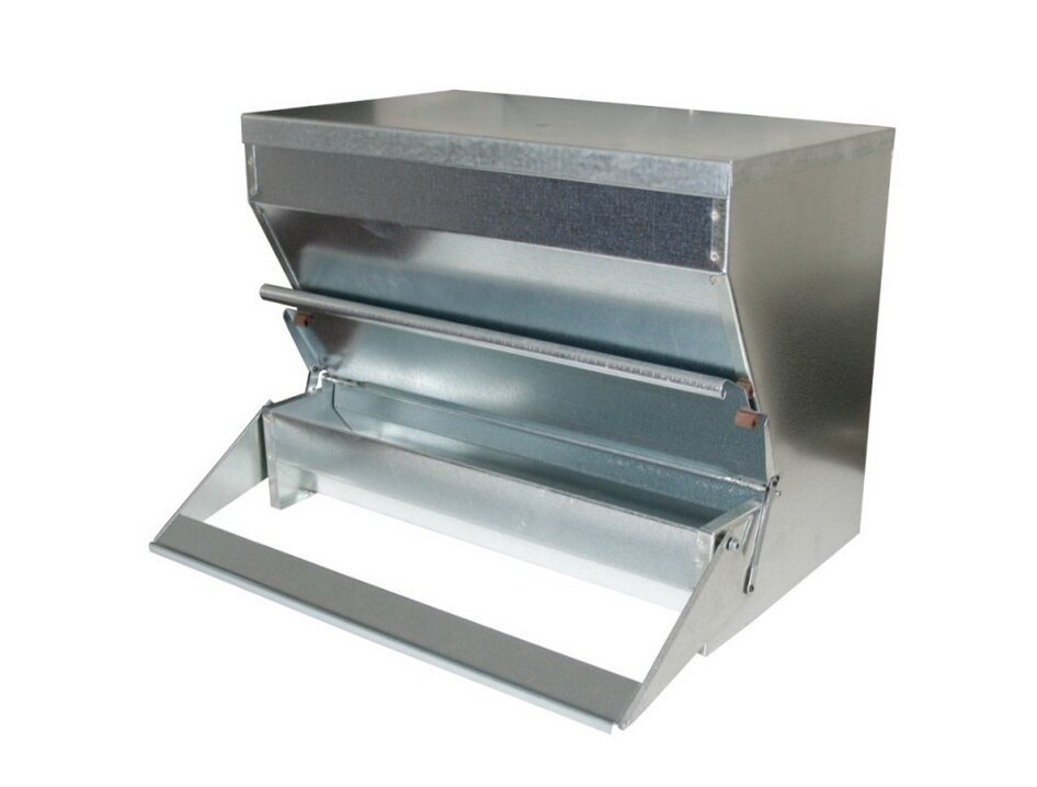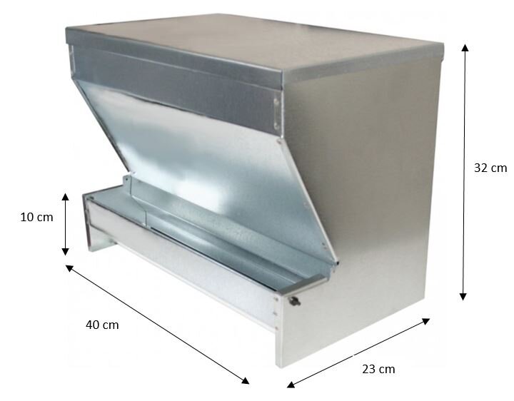 • vhodné pro cca 10 slepic, které se naučí krmítko používat během několika málo dnů (pro začátek je nutné zatížit nášlap, aby slepice našly potravu)
