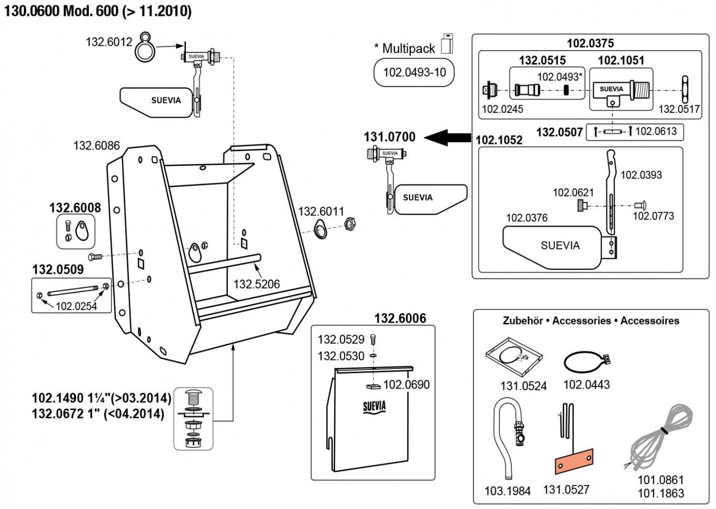 Nerezový napájecí žlab Suevia Model 600