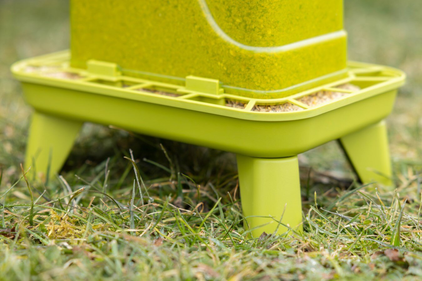 - Stabilní a čisté: dodávané nožičky zaručují stabilní postavení krmného systému. Zároveň je krmivo chráněno před znečištěním, což zvyšuje hygienu ve stáji a na zahradě.