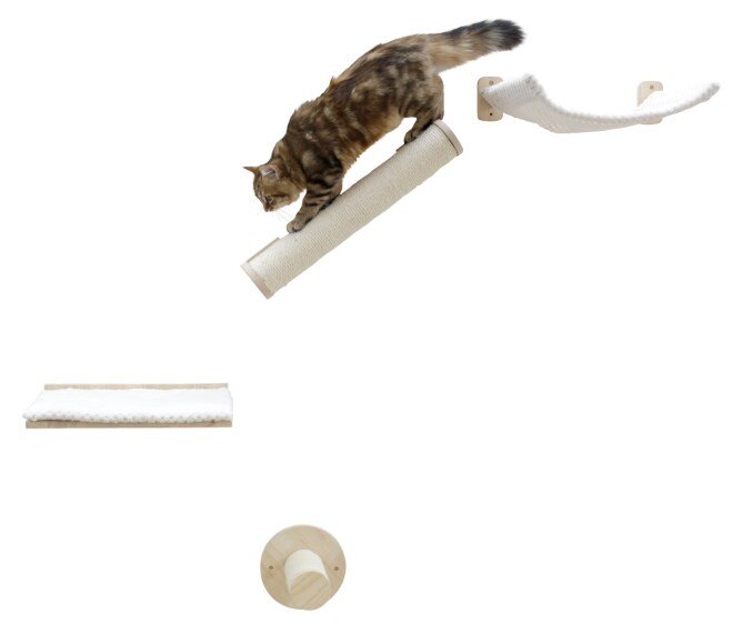 Odpočívadlo pro kočky nástěnné 4-dílné, přírodní/bílá