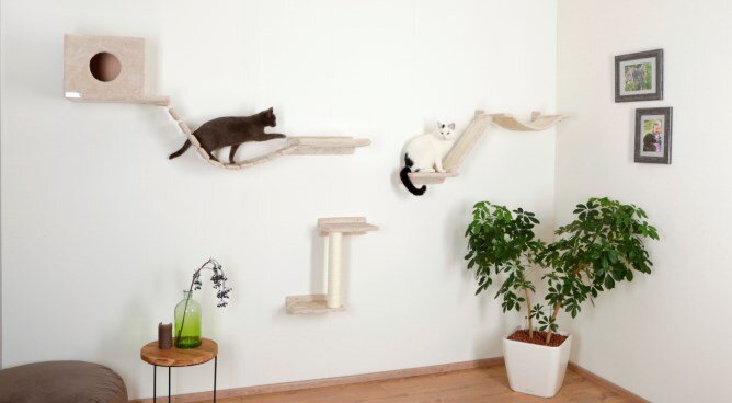 - 9-dílné odpočívadlo pro kočky k zavěšení na stěnu