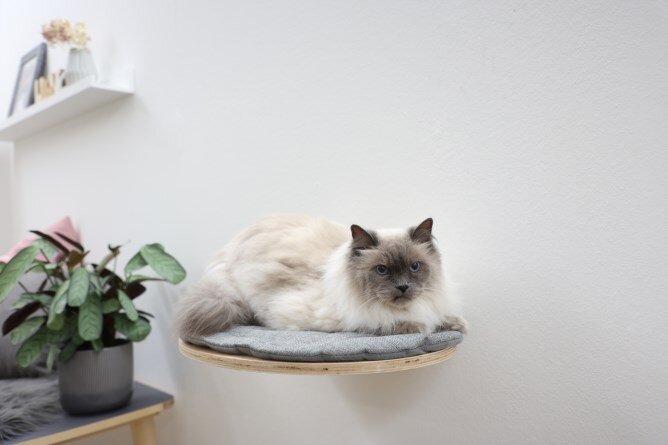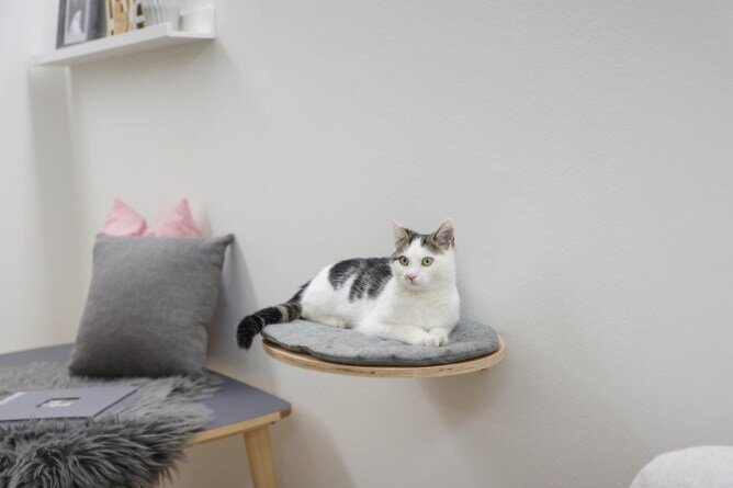 Odpočívadlo pro kočky oválné nástěnné Tofana, 50 x 35 x1,5 cm, šedé