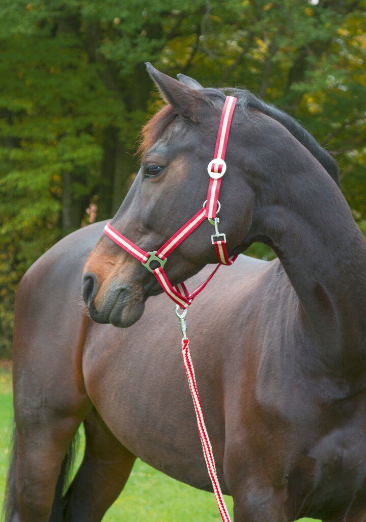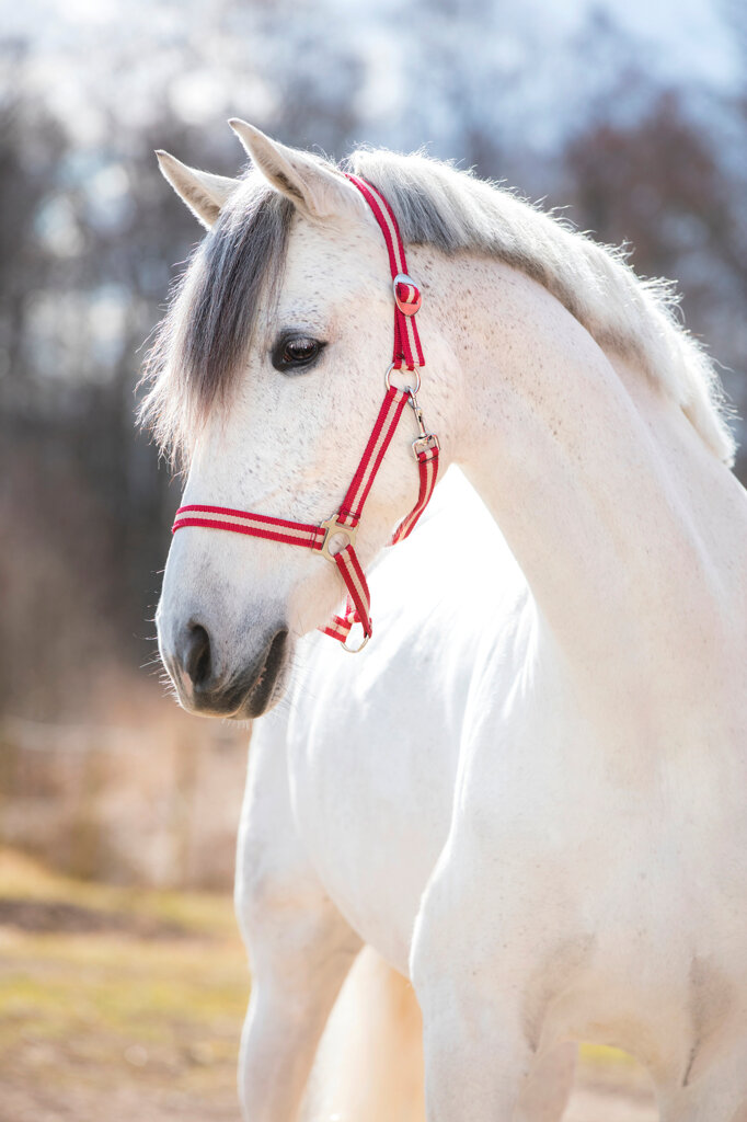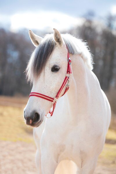 Klasická nylonová ohlávka s nerezovým kováním, možností nastavení za ušima, zapínáním na karabinu. Lze kombinovat s vodítkem 321440R.