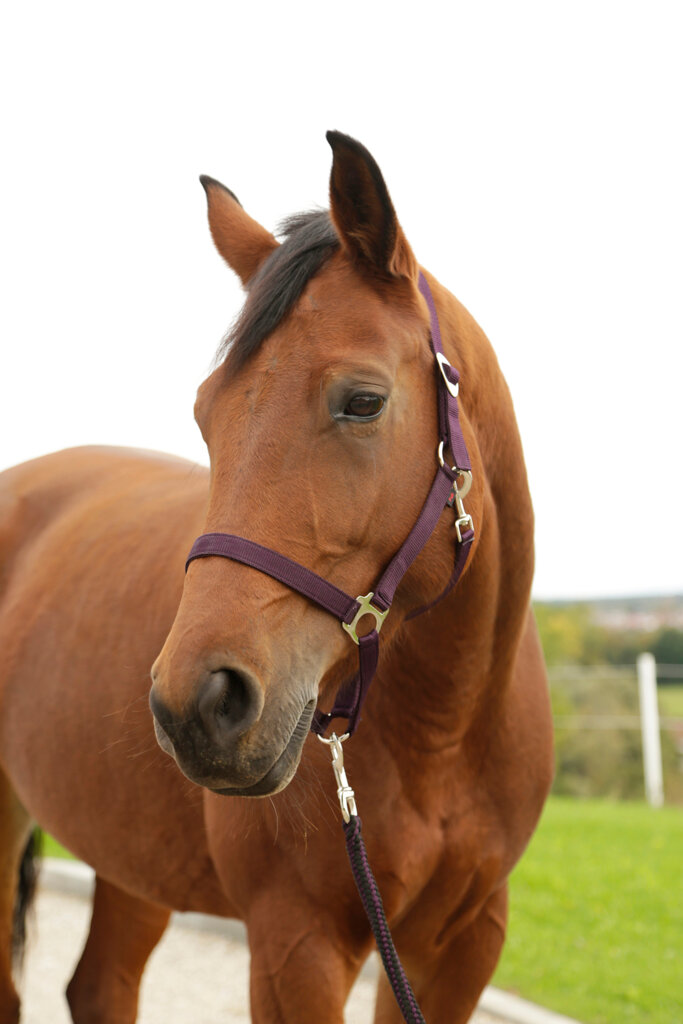 Klasická nylonová ohlávka s nerezovým kováním, možností nastavení za ušima, zapínáním na karabinu. Lze kombinovat s vodítkem 321440R.• cenově výhodná kvalita