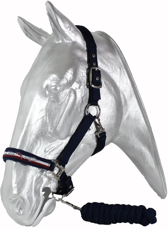 Luxusní ohlávka včetně barevně sladěného vodítka ze silného polyesterového popruhu s měkkými hranami. Nánosník je zdobený stuhou s logem Kentaur, Ohlávka má vysoce kvalitní zesílení kování, nastavitelný nánosník, nátylník po obou stranách. Nátylník i nánosník je podložený měkkým fleecem. Vodítko je velmi příjemné do ruky.