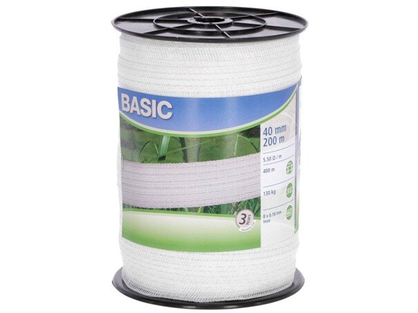Ohradníková páska BASIC o šířce 40 mm je vhodná pro stavbu elektrických ohradníků především pro koně a další hospodářská zvířata. Díky své šířce je velmi dobře viditelná, což pomáhá zvířatům ohradník respektovat a snižuje riziko jeho poškození.