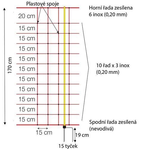 Ohradníková síť proti vlkům LACME 170cm/50m/dvojitý hrot