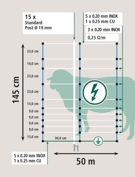 Vzhledem k výšce 145 cm nad zemí je tato síť vhodná i pro koně, poníky, osly nebo alpaky.