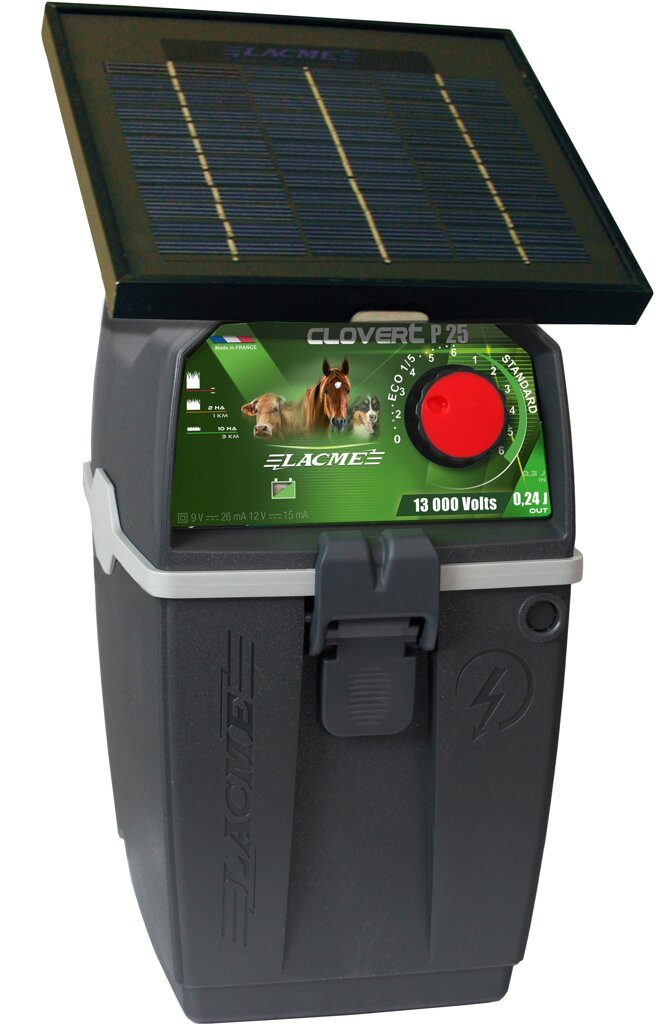 Ohradníkový bateriový zdroj CLOVERT P25 0,24J se solárním panelem 3W