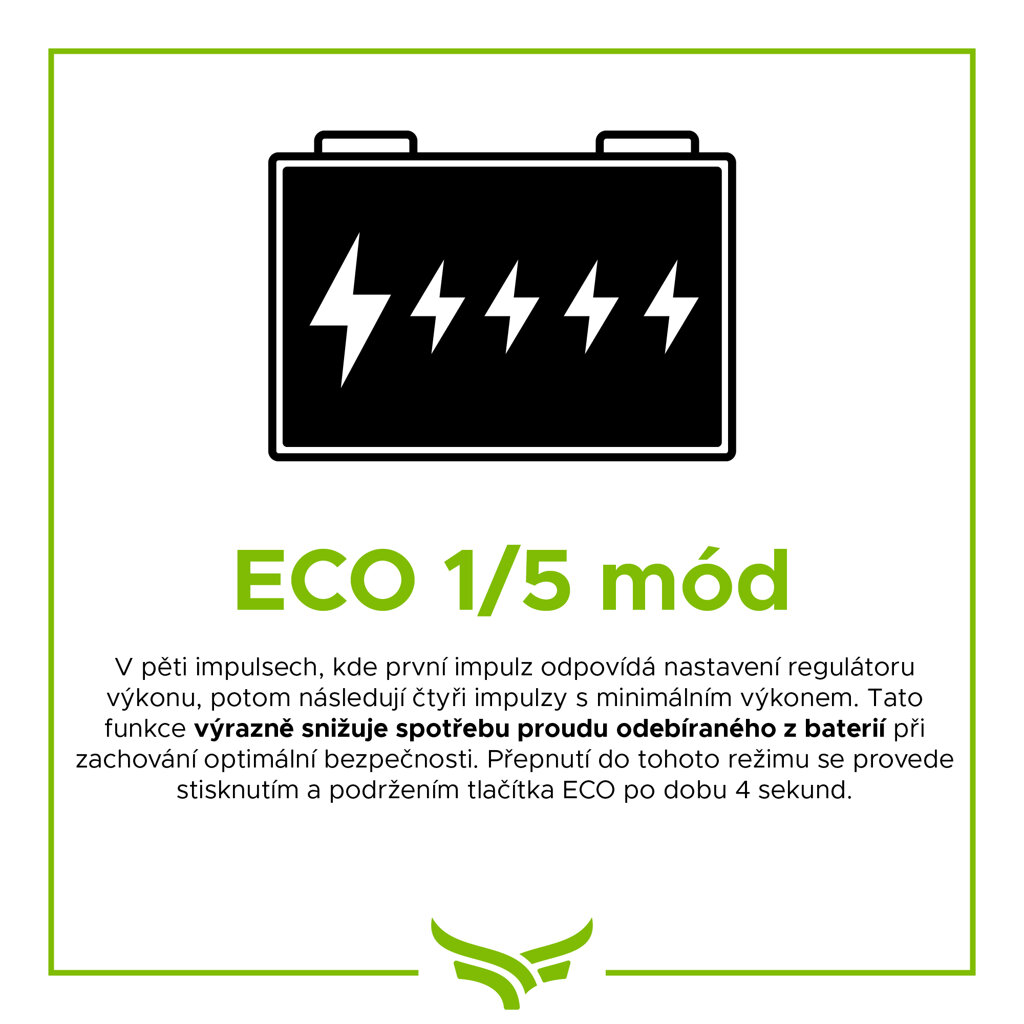 • ochrana - při poklesu napětí, se zdroj automaticky přepne do ECO režimu, kdy je v činnosti jeden z pěti impulzů