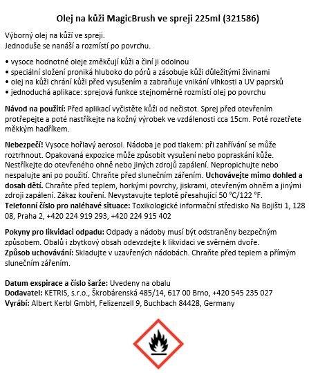 Výborný olej na kůží ve spreji. Jednoduše se nanáší a rozmístí po povrchu.• vysoce hodnotné oleje změkčují kůži a činí ji odolnou