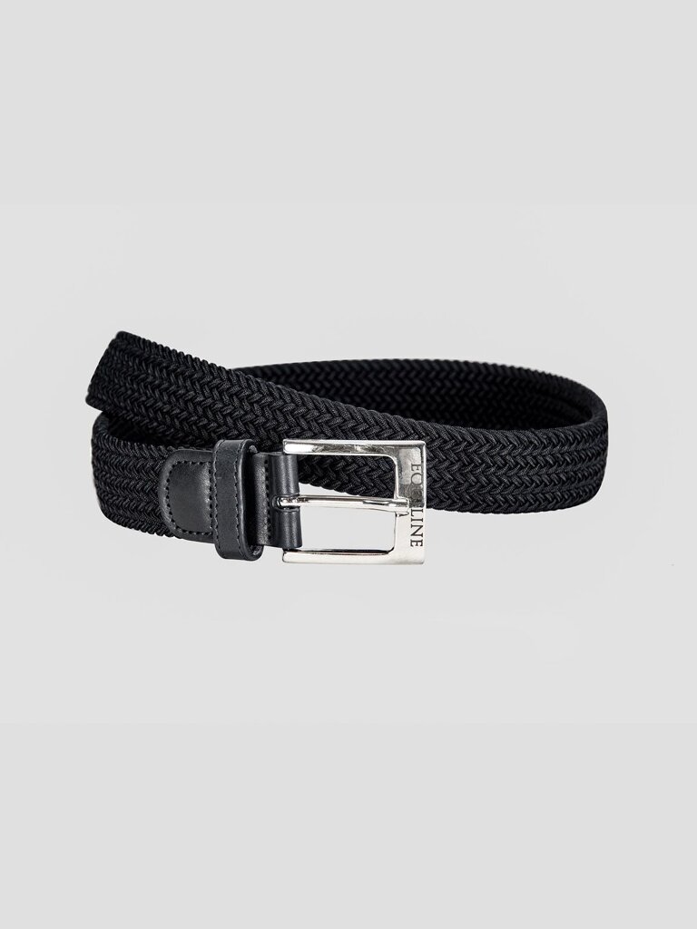 Pletený, elastický opasek EQUILINE s krásnou kovovou sponou zakončený kůží s vyrytým logem Equiline.
