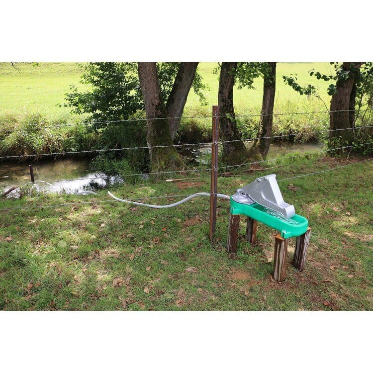 Tip: Aby byla čerpadlo chráněno a zvířatům pomohlo naučit se jeho obsluze, můžete vedle a za napájecí misku nainstalovat zábranu (např. dřevěný plot). Tím budou zvířata vedena k pumpě zepředu a automaticky budou stát správně, aby ji mohla obsluhovat.