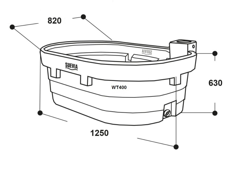 • oválný tvar nádrže umožňuje napájení několika zvířat zároveň a lze také jednoduše naložit na přepravník za auto