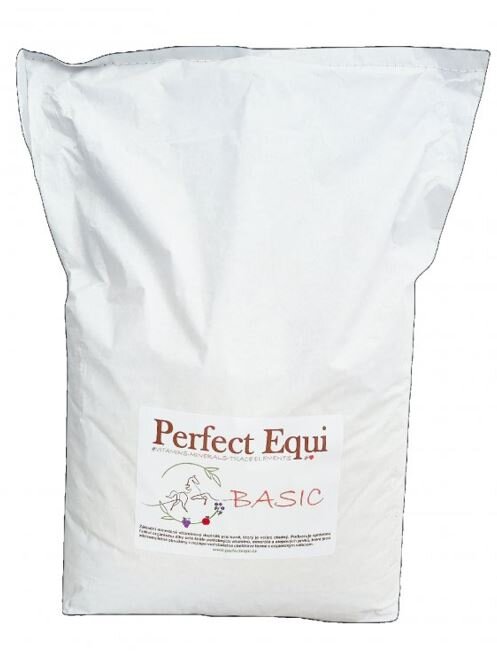 Perfect Equi BASIC je vysoce kvalitní a chutný minerálně-vitamínový doplněk stravy pro koně. Přidáním obohatíte krmnou dávku a celou řadu důležitých vitamínů, minerálů a stopových prvků, které jsou zde obsaženy v nejlépe vstřebatelné chelátové formě s organickým selenem. Tělo tak může dobře fungovat, mít silnější obranyschopnost, kůň bude lépe prospívat a vypadat.