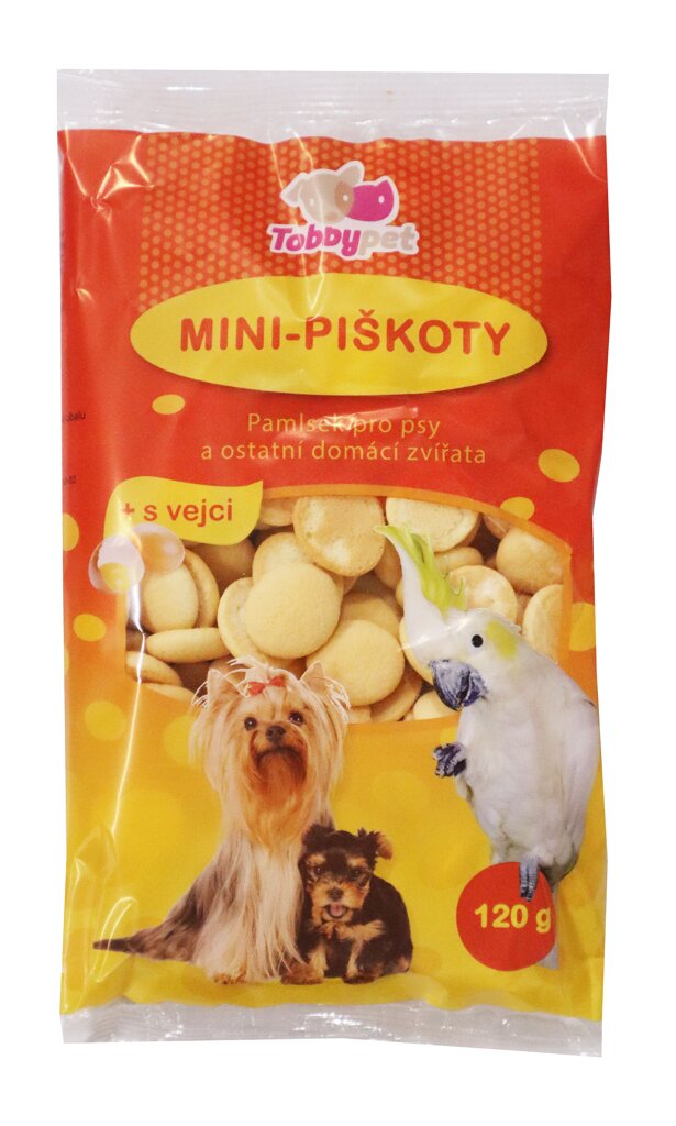 Piškoty TOBBY MINI jsou speciálně upravené piškoty menší velikosti, ideální pro malé a střední psy. Díky své křehké struktuře a výborné chuti jsou skvělým pamlskem při výcviku nebo jako odměna za dobré chování.