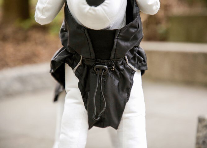 - Obvod hrudníku se měří v nejširším bodě hrudníku za předními nohami. Obvod hrudníku by proto měl odpovídat o 5 - 10 cm většímu rozměru než je skutečný změřený obvod u zvířete - zajištění dostatečné volnosti pohybu.