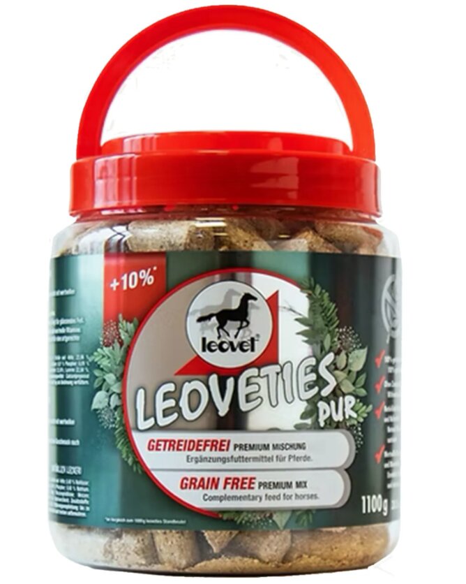 LEOVETIES PUR jsou šetrně lisované pamlsky bez obilovin, vyráběné za nízké teploty pro zachování všech důležitých živin. Ideální jako odměna pro každodenní použití, zejména pro koně s citlivým zažíváním nebo speciální dietou.
