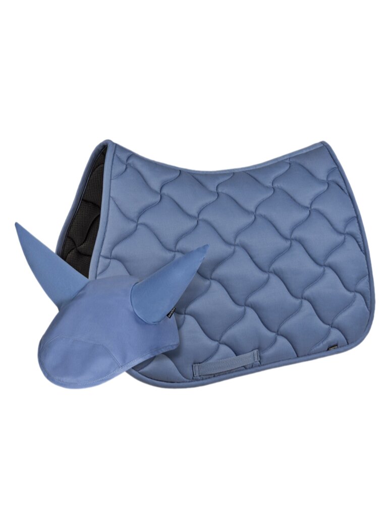 Elegantní set podsedlové dečky a čabraky EQUILINE Rombo Fluid v jemné světle modré barvě spojuje luxusní design, kvalitu a funkčnost, kterou značka Equiline proslula. Dečka je vyrobena z vysoce prodyšného materiálu s měkkou výplní, která dokonale tlumí nárazy a odvádí vlhkost od těla koně. Anatomický střih zajišťuje ideální přizpůsobení hřbetu a maximální komfort při pohybu.