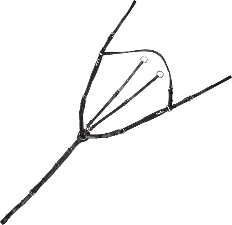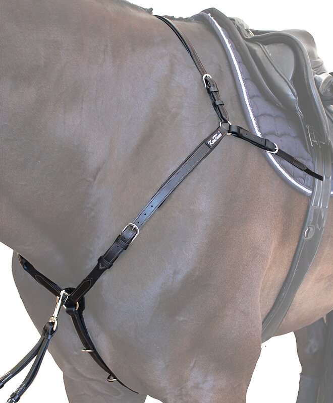 Kožený, skokový poprsník Kentaur Mons s možností odepnutí martingalové vidlice. Nově je všita krátká gumová vložka.