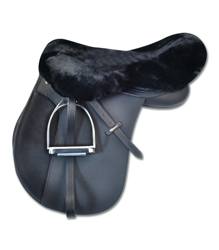 Potah na posedlí anglických sedel z pravé, vysoce kvalitní jehněčí kůže. Potah se snadno upíná pomocí elastického pásu na suchý zip, který provlečete tunelem mezi sedlovými polštáři. Potah je vhodný pro sedla s posedlím od 16" do 18".