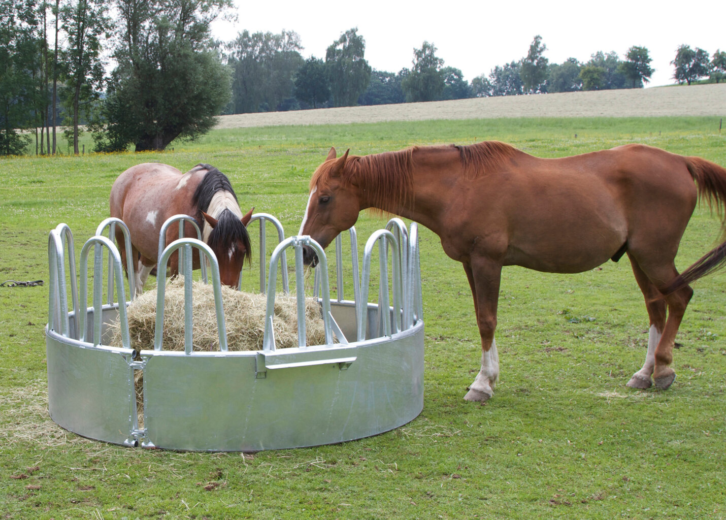 Kulatý krmelec s 12 místy ke krmení pro normální a kulaté balíky sena