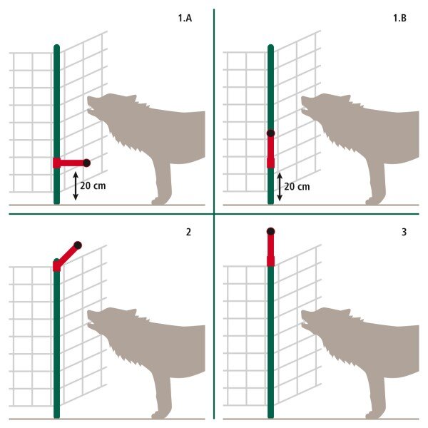 Flexibilní a bezpečné řešení proti vlkům: může být použito jako ochrana proti podhrabání, přeskočení, nebo ke zvýšení výšky ohradníkové sítě.