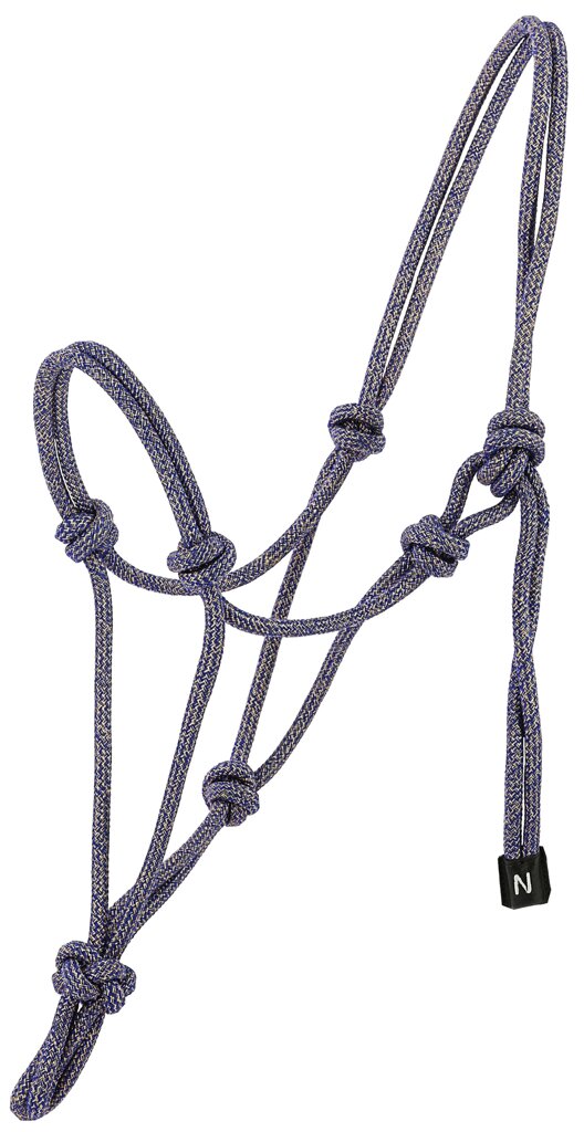 Elegantní provazová ohlávka z lesklého polypropylenového lana s lurexem a třpytkami, který upoutají na první pohled.
