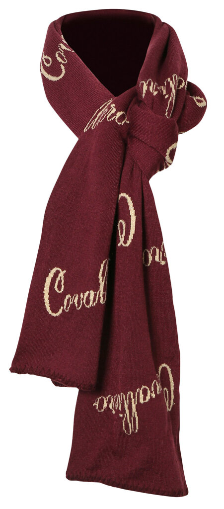 Hřejivá šála s nápisem Covalliero z metalické nitě.