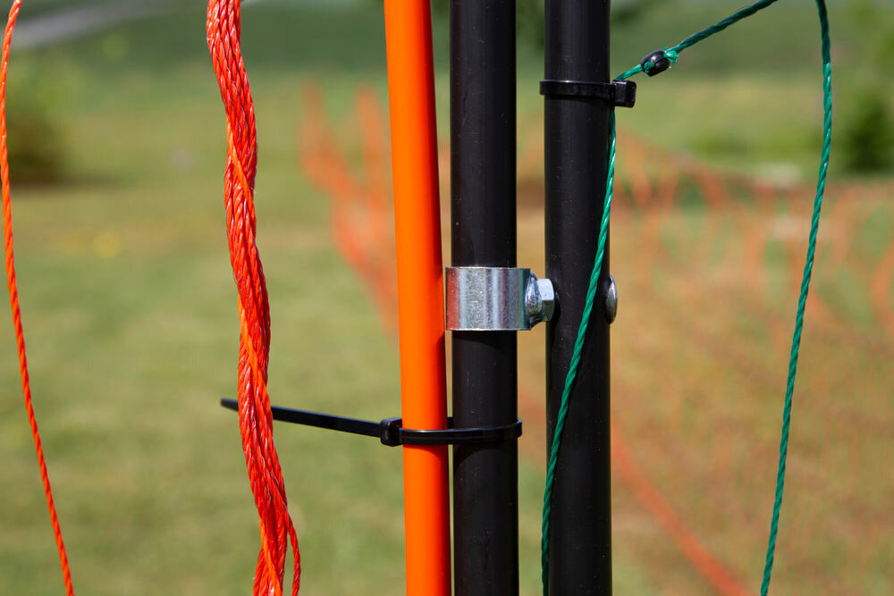 V případě stavby ohrady větších rozměrů doporučujeme v rozích, popřípadě ostrých úhlech, zpevnit ohradu pevným kůlem, popřípadě je možné použít plastové kotvy z naší nabídky (obj. č. 27322).