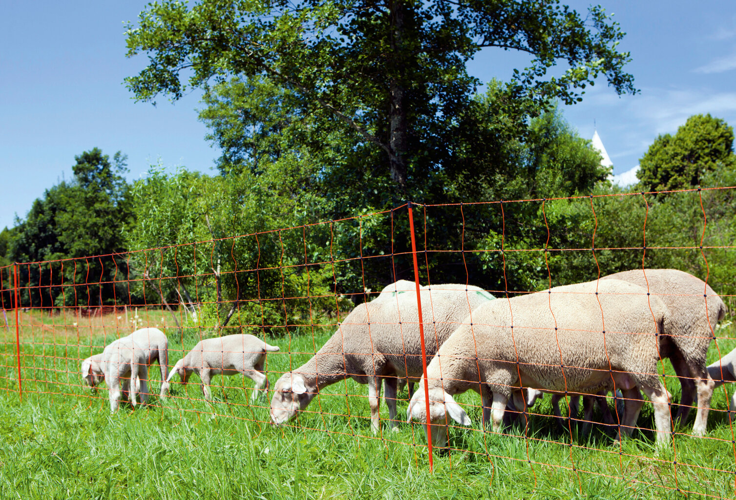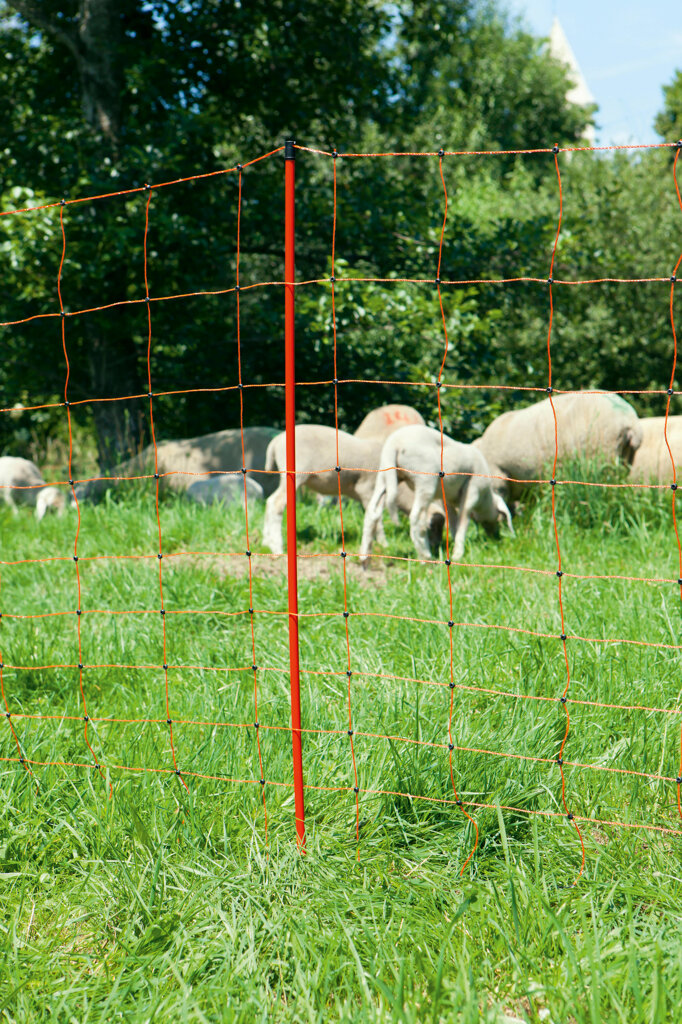 Síť pro ovce OviNet, výška 108 cm, délka 50 m, dvojitý hrot, oranžová• 14 stabilních plastových sloupků