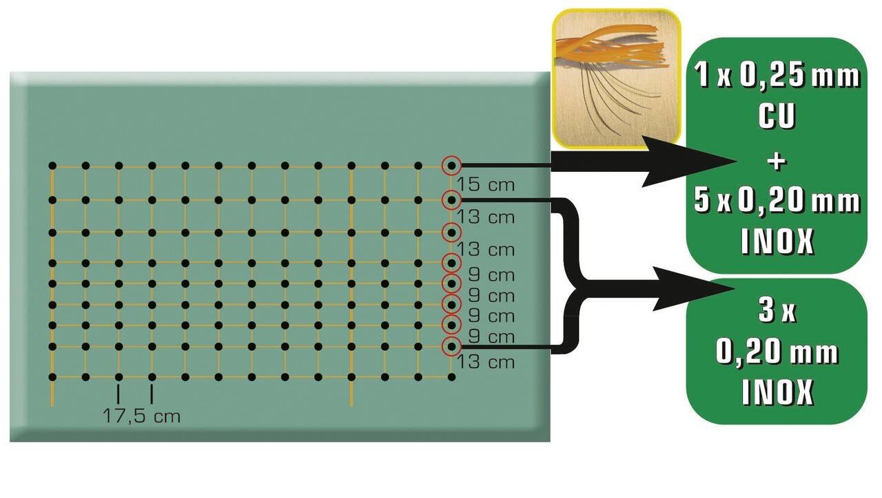 Optimální vedení elektřiny k nejvzdálenější síti na ovce díky pozinkovanému měděnému vodiči v nejvyšším lanku! 20-ti násobně vyšší vodivost v porovnání se standardními sítěmi!