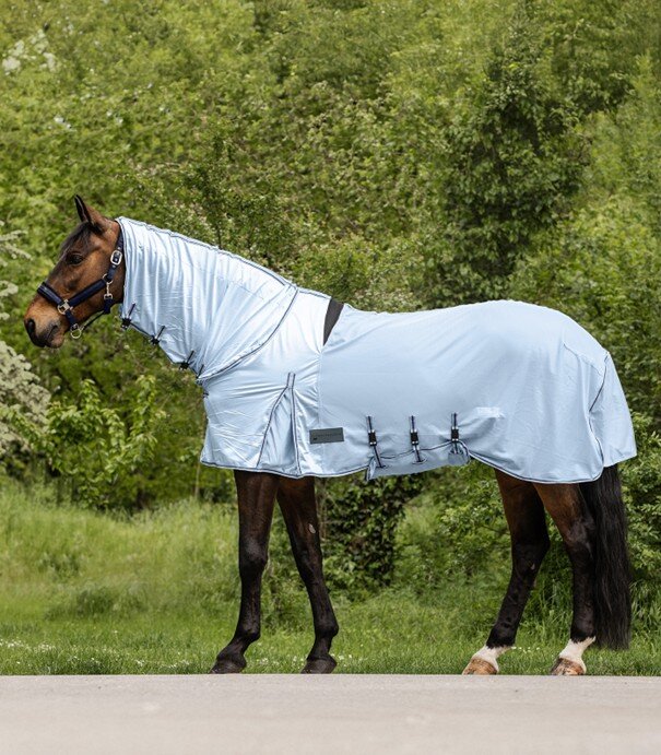 Ochranná síťovaná deka WALDHAUSEN Eczema poskytuje koni spolehlivou ochranu před hmyzem, UV zářením a podrážděním pokožky, zejména u koní trpících letní dermatitidou (ekzemem). Díky jemné, husté síťovině a promyšlenému střihu zajišťuje maximální pokrytí těla a zároveň vynikající prodyšnost i v horkých dnech.