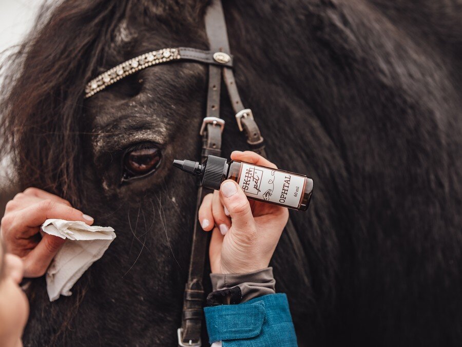 SkinPET® Opthal je ideální pro pravidelnou péči o oči koně, vhodný k výplachu po návratu z prašného prostředí nebo v sezóně pylů a alergií. Potíže se může způsobovat i ostré slunce, silný vítr nebo cizí těleso v oku.