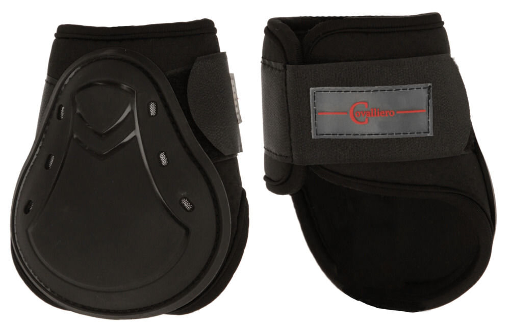 Anatomicky tvarované chrániče na zadní nohy z měkkým, ale odolným výliskem ze syntetické gumy, který tlumí nárazy, ventilačními otvory které zajišťují větší prodyšnost. Jednoduché zapínání na suchý zip.