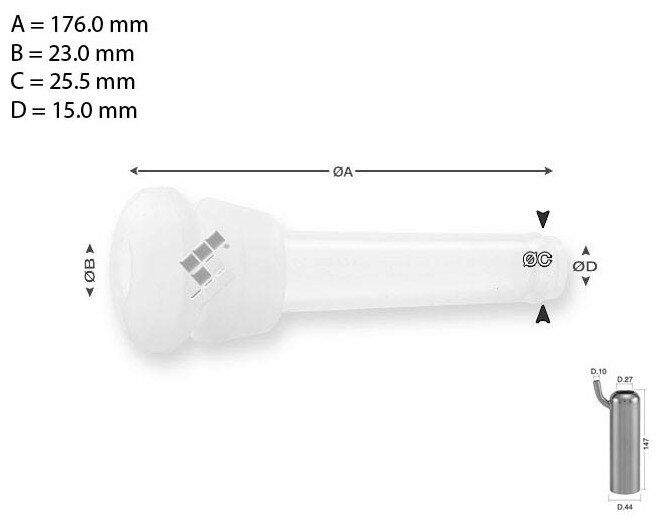 - Aby byl zajištěn optimální výkon silikonové návlečky, doporučuje se užívání plastového pouzdra, čímž dojde k minimalizaci rizika, že z důvodu nepřesné povrchové úpravy nerezových materiálů, struk praskne.