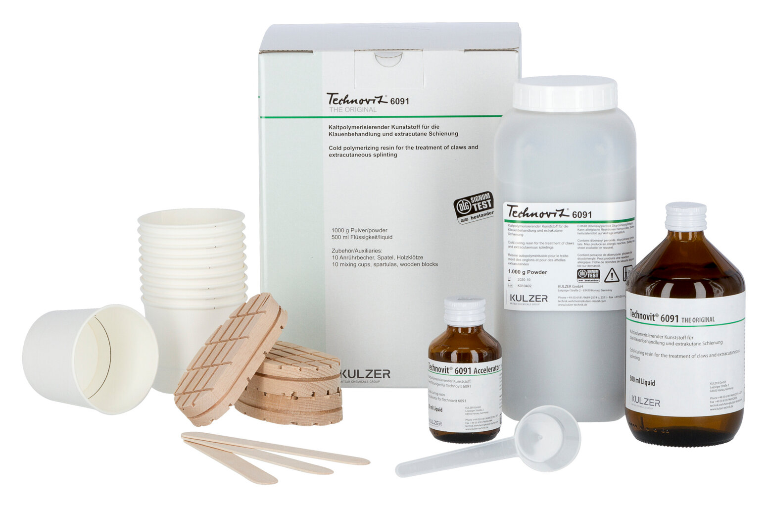 Rychle tuhnoucí umělá hmota Technovit 6091 je díky svým speciálním vlastnostem nepostradatelným všestranným pomocníkem ve veterinárním lékařství a při ošetřování a léčbě paznehtů. Při určitých indikacích podporuje Technovit 6091 léčbu předepsanou zvěrolékařem a podstatně tak zkracuje často dlouhou dobu léčení. V léčbě a ošetřování kopyt a paznehtů nalezne Technovit 6091 uplatnění zejména jako: fixování paznehtů při zánětlivých onemocněních, fixace špiček paznehtů, výplň defektů paznehtů (praskliny v rohovině), tvarování kopyta, ortopedická léčba kopyt, především u hříbat (kozí kopyto, dřevěná noha).