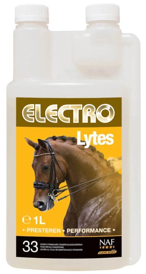 Tekuté elektrolyty nahrazují nezbytně důležité soli, které koně vylučují pocením. Electro Lytes je snadno použitelná kapalina určená k nahrazení čtyř základních solí, které se nejčastěji ztrácejí pocením. U koní, kteří pracují těžce nebo v období extrémního tepla, krmte koncentrovanější přípravek NAF Elektro Salts. Přípravek Electro Lytes může být podáván ve vodě (nejlépe vlažné), ve vlhkém krmení nebo přímo do tlamy.