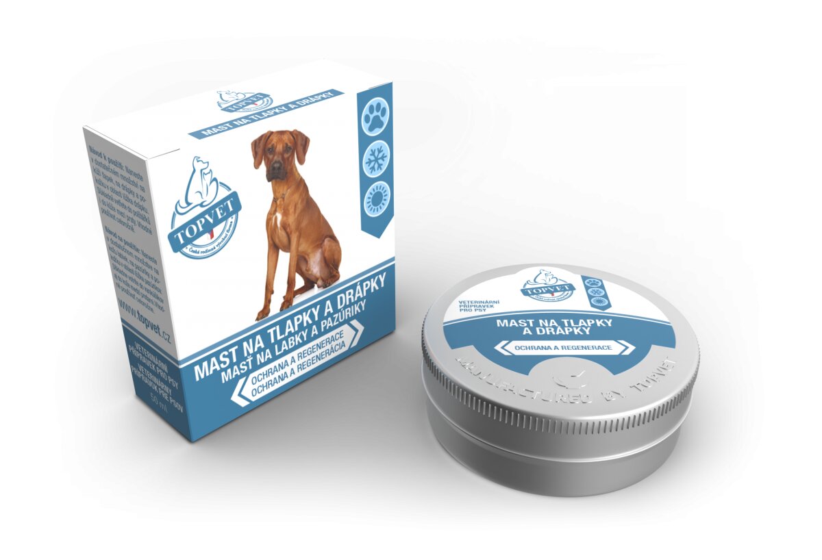 - mast na tlapky a drápky Topvet je luxusní prostředek k preventivnímu ošetření kůže tlapek, drápků a jejich lůžek