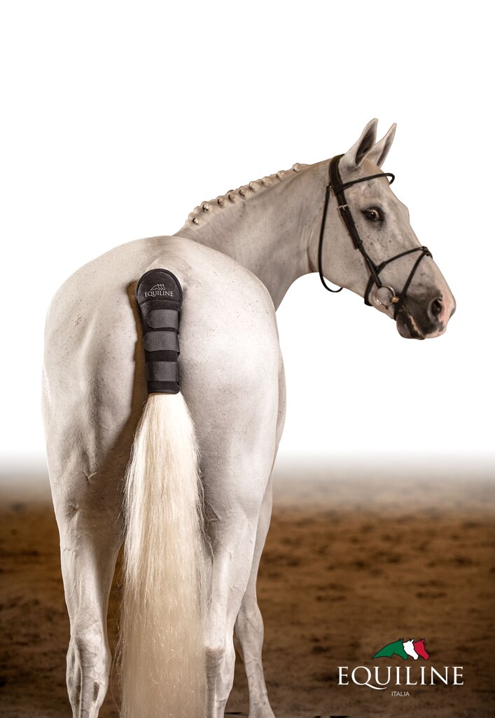 Transportní chránič ocasu EQUILINE z vysoce odolného materiálu proti roztržení a měkké polstrování. Jednoduše se nasazuje díky 3 nastavitelným suchým zipům. Chránič lze prát v pračce na 30°C