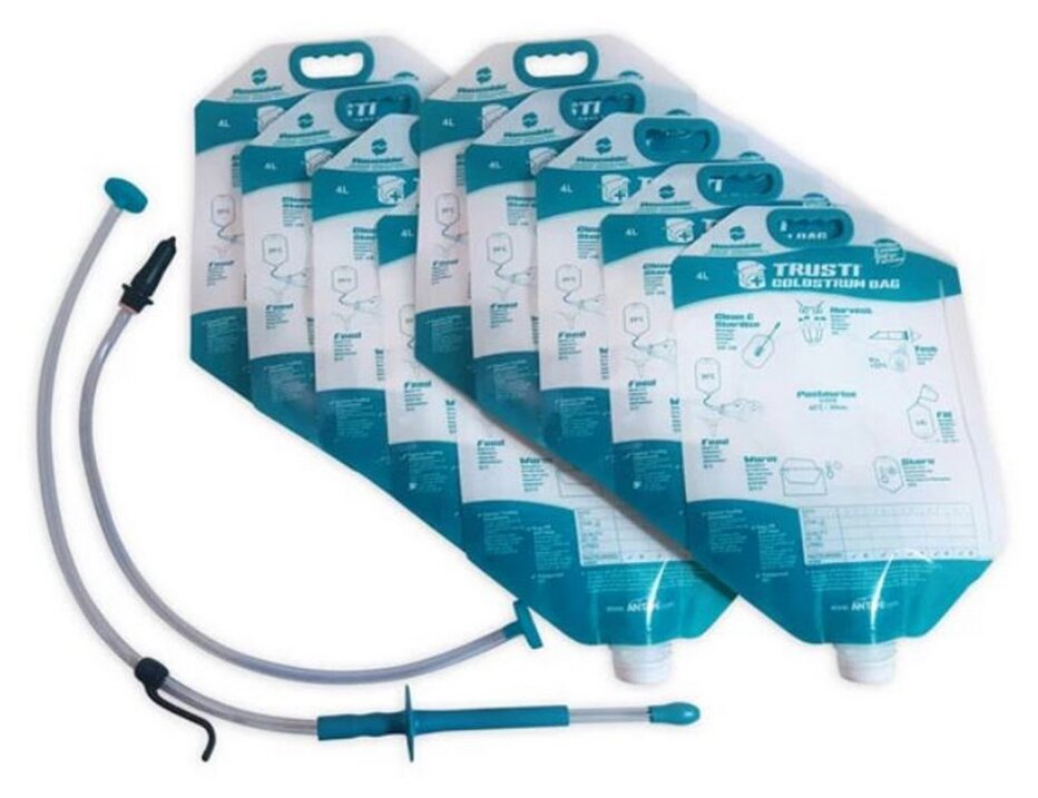 - sada obsahuje: 10 x 4l sáček Trusti Colostrum Bags na mlezivo, 1x sondu Trusti Tuber a 1x cucák pro telata - vhodné i pro dospělé ovce, kozy a lamy - široké hrdlo pro jednoduché plnění a čištění - vizuelní kontrola – vidíte složení mleziva a jestli hladina klesá při krmení - určeno pro opětovné použití - rozmrazeno pod 20 minut - materiál sáčku uzpůsoben k procesu pasterizace - objem sáčku 4 l navržen pro co nejrychlejší zamrazení/rozmrazení - funkční design umožňuje zapsat až 5 záznamů o mlezivu (datum, číslo zvířete, množství, zaškrtnutí pasterizace proběhla/neproběhla) Jedna sada umožňuje použít drencher i cucák. Lze užít i pro uvolnění bachorových plynů při nadmutí.